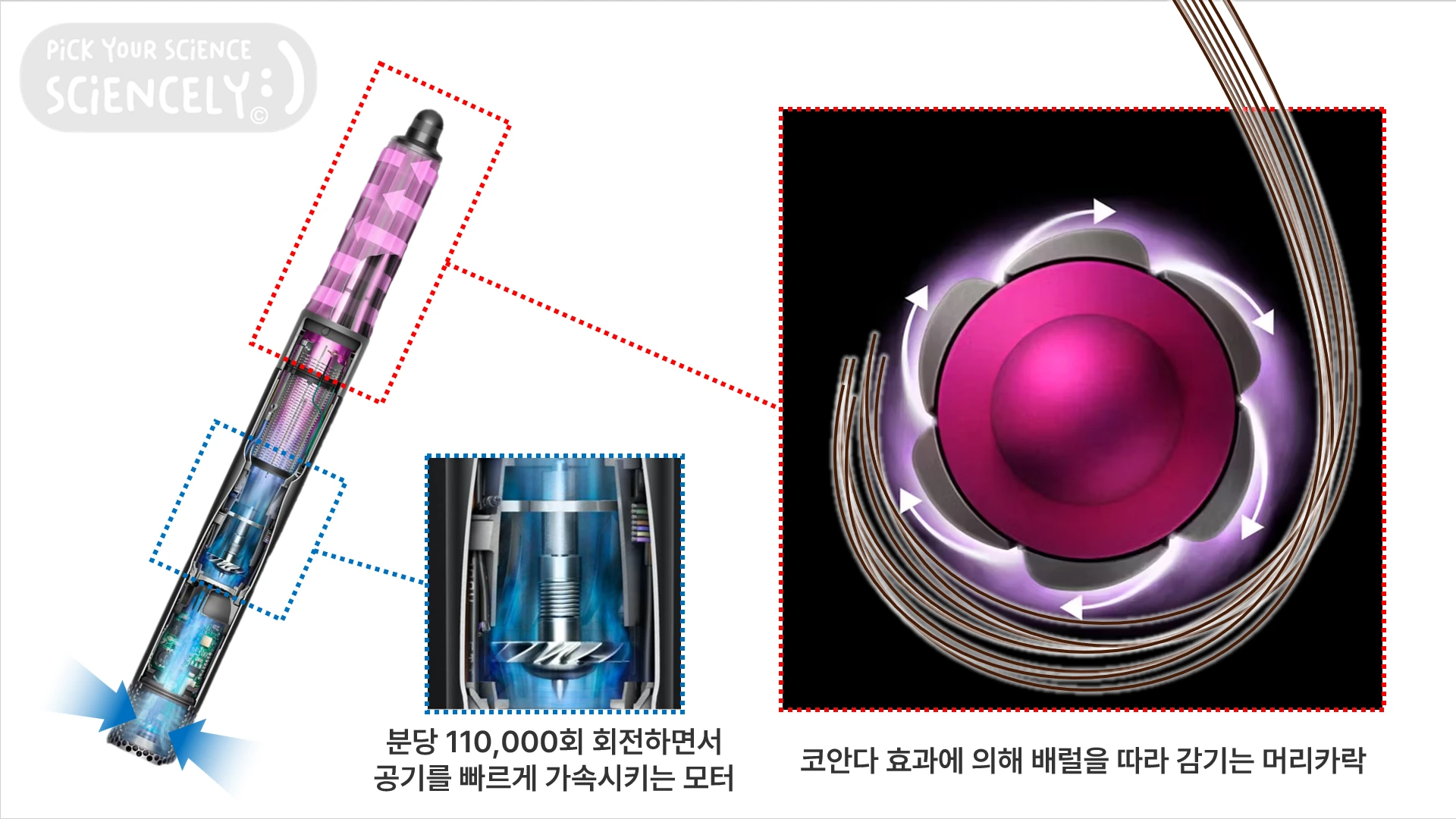 에어랩은 공기의 흐름을 과학적으로 제어하여 스타일링하는데요, 어떻게 가능한 것인지 자세히 알아봅시다.
